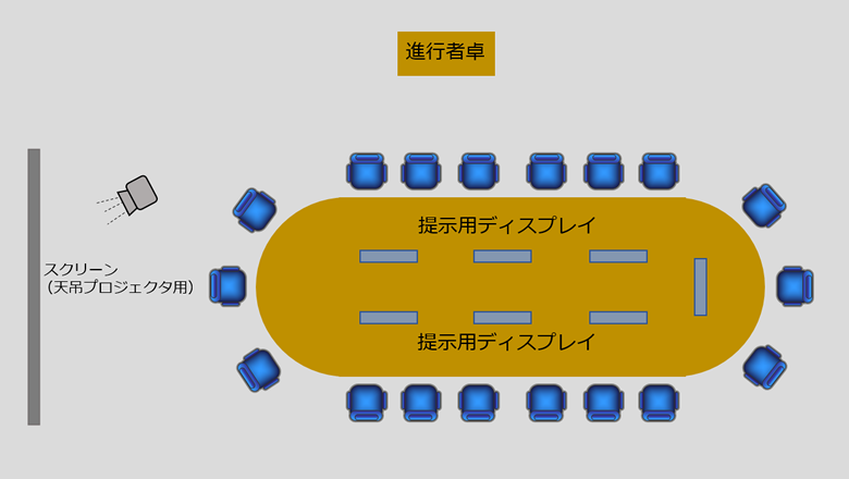 プロジェクタでは確認が行い難い、細かな資料や 再現性が重視される資料等を役員様が間近で見れるので、会議を円滑に進める事が出来ます。