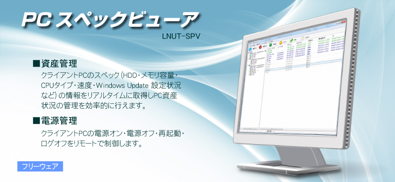 『PCスペックビューア』はクライアントPCのハード資産管理と電源管理の機能を併せ持った端末管理システムです。