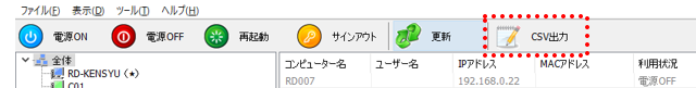 詳細リスト部で表示させた情報をCSV形式で出力して保存することができます。