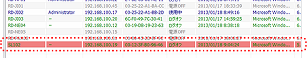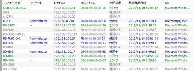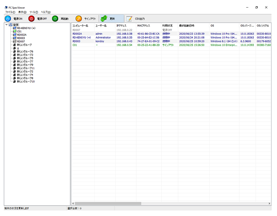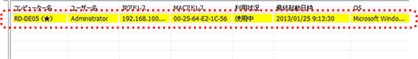 詳細リストは、各クライアントPCの状態や情報が表示されます。