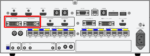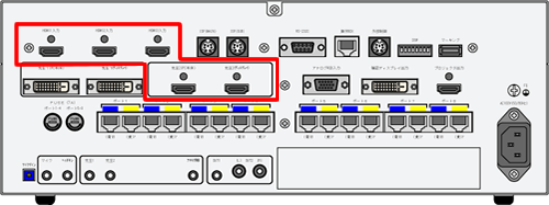 マスター装置に、デジタルDVI-D×1系統、HDMI×4系統、アナログRGB×1系統の入力端子を装備しています。