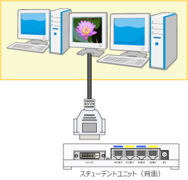スチューデントユニット(子機)には、DVI端子に対応した中間ディスプレイを1台接続することができます。