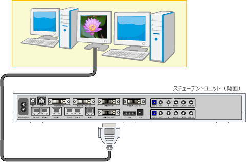 スチューデントユニット(子機)には、DVI端子に対応した中間ディスプレイを1台接続することができます。