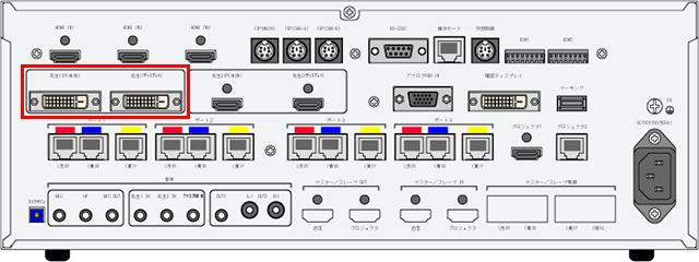 マスター装置背面の先生1のDVI端子及び先生2のHDMI端子では、接続されたディスプレイのEDIDを読み込んで自動的にパソコンに伝えます。