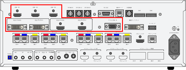 マスター装置に、デジタル端子のHDMIとDVI-Dのほかに、アナログRGB端子を装備しています。
