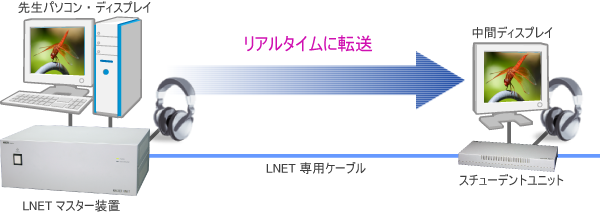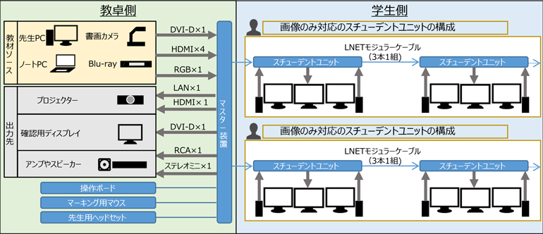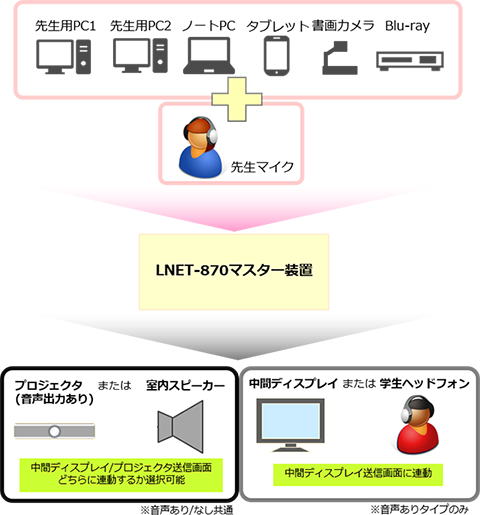 『LNET-870』は、デジタル端子のHDMI、DVI-Dを搭載し、デジタルコンテンツの双方向転送を実現した授業支援システムです。