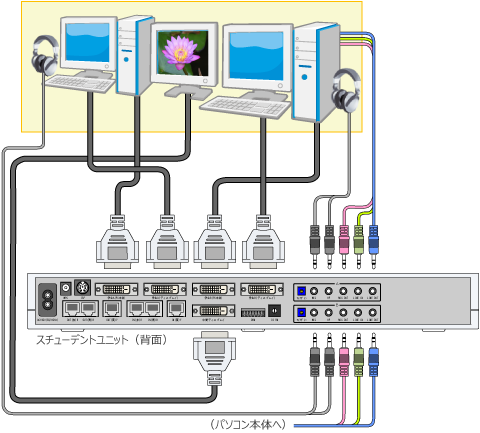 スチューデントユニット1台につき中間ティスプレイ1台を接続