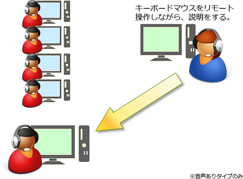 キーボード・マウス介入機能により、教壇にいながら、先生パソコンのキーボードとマウスを使って学生パソコンをリモート操作することができます。