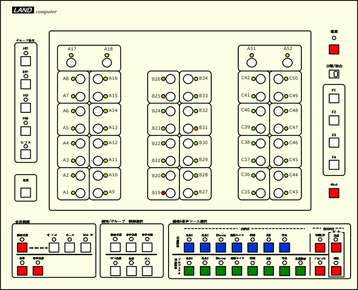 LNET-C870 標準操作ボード 学生座席ボタンは横8列×縦10段です。