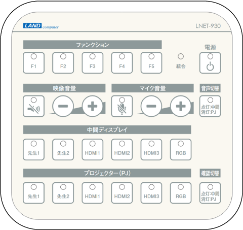 • 2教室分離統合を実現するには統合用マスター装置「LNET-M930T」及びオプションの「統合ケーブルセット」が必要になります。