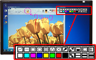 パソコンやブルーレイ/DVDなどの教材画面にカラフルな書き込みをして転送できます。