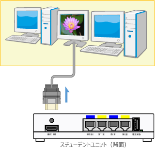 スチューデントユニット1台につき中間ティスプレイ1台を接続